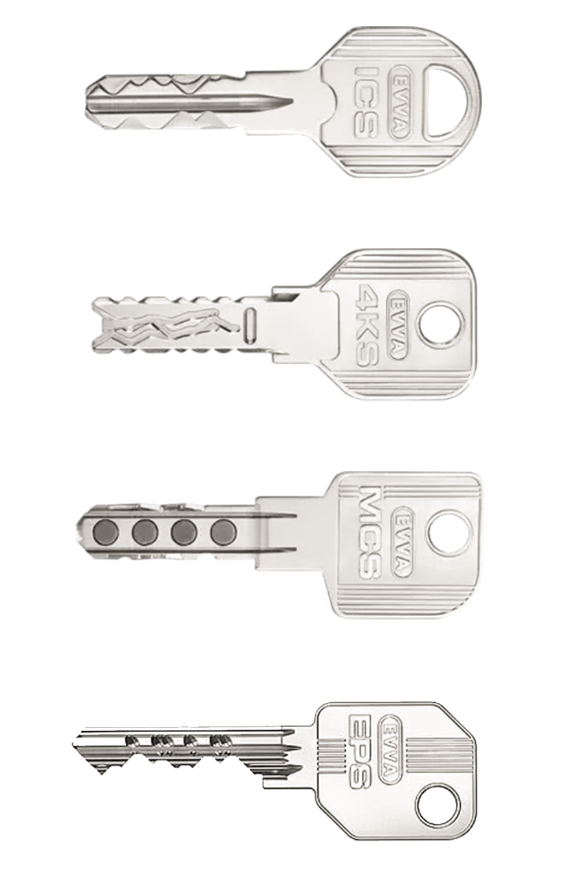 EVVA bietet vier moderne mechanische Schließsysteme, die sich in Sicherheit, Komfort und Einsatzbereich unterscheiden.