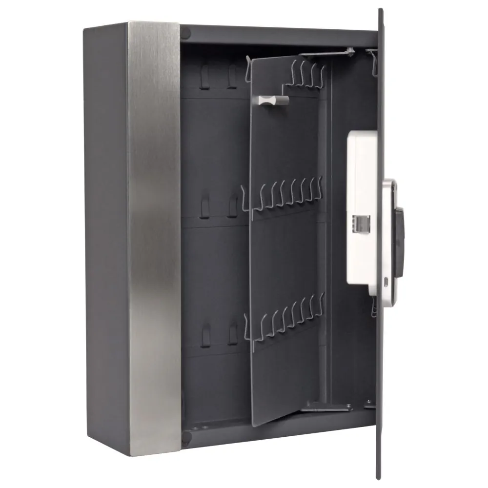 Im Inneren befinden sich 68 fix montierte Haken, die eine übersichtliche Organisation der Schlüssel ermöglichen. Damit eignet sich der Key Pro 68 ideal für Haushalte, kleine Betriebe oder Büros, die eine einfache und sichere Schlüsselverwaltung benötigen.
