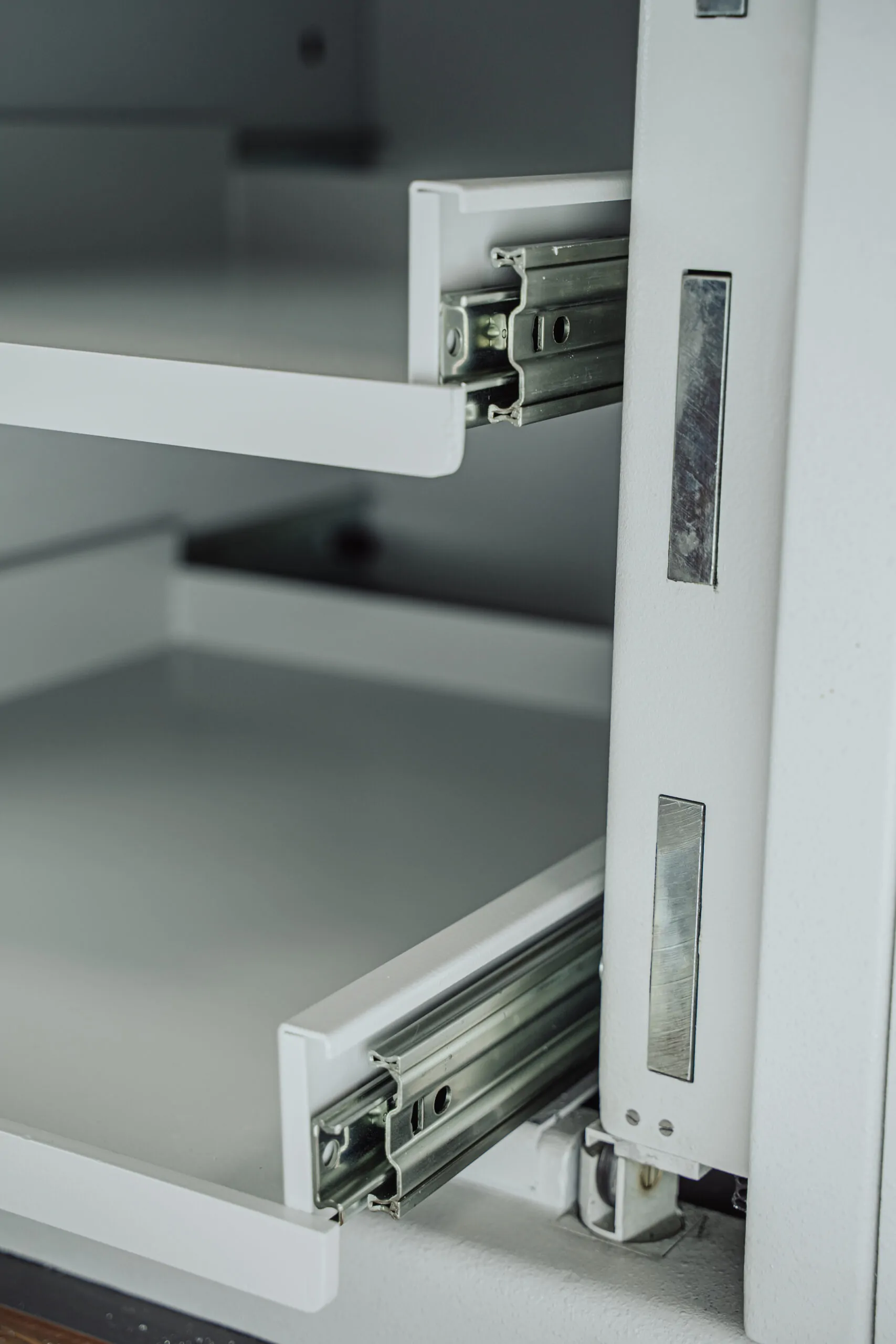 Der CWP0901 überzeugt durch seine platzsparende Konstruktion: Die Türen schwenken seitlich in den Tresorkörper ein, wodurch der Bereich vor dem Tresor frei bleibt und mehrere Tresore nebeneinander problemlos genutzt werden können. Dank seiner Maße ist er optimal für den Einbau unter Pulten geeignet – die ideale Lösung für Banken, Juweliere, Pfandleihhäuser und alle Orte, an denen Tresore tagsüber geöffnet bleiben, ohne den Arbeitsablauf zu behindern.