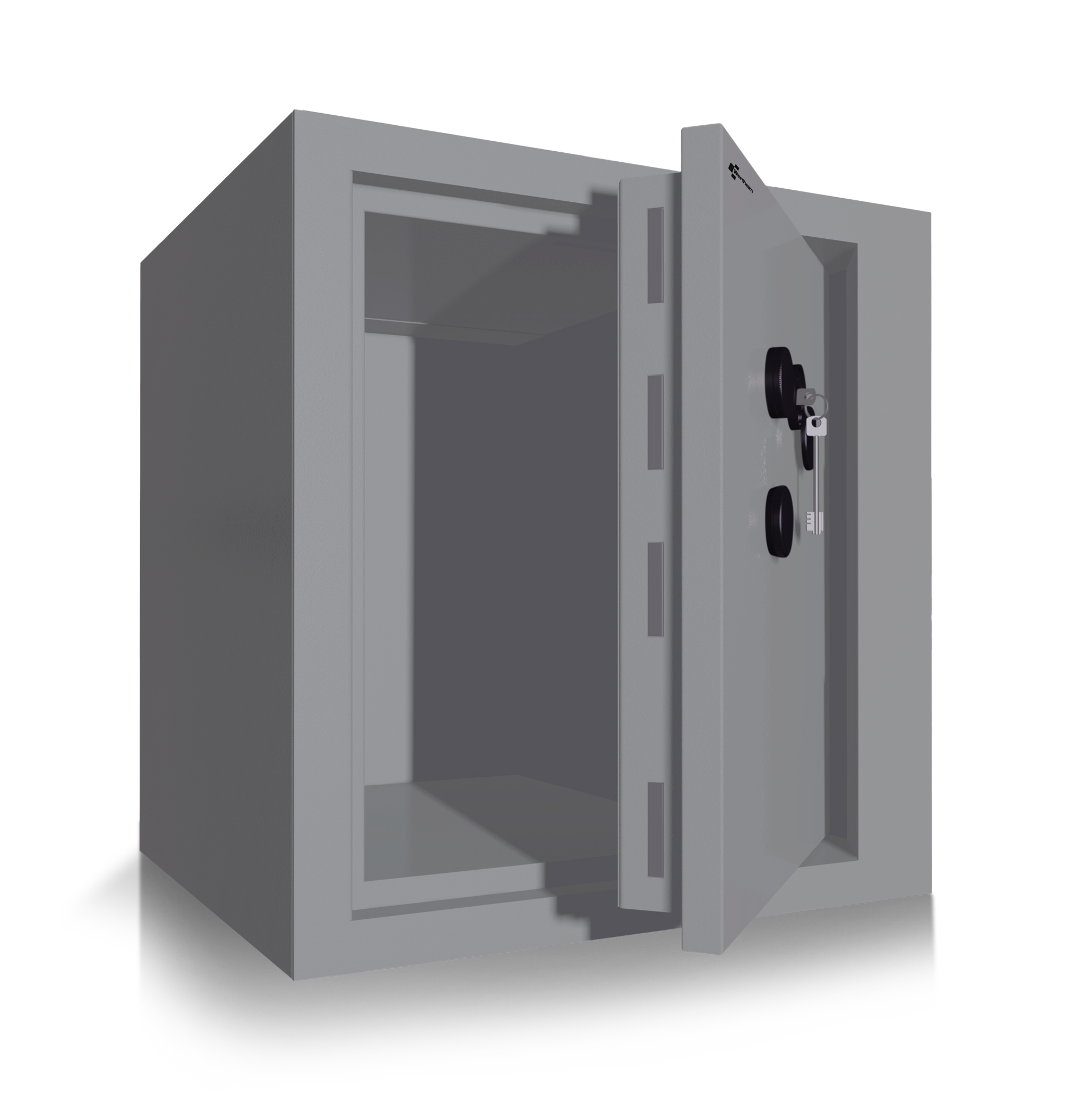 Serienmäßig ist er mit einem Doppelbartschloss und zwei Schlüsseln ausgestattet, optional stehen Elektronikschlösser mit mechanischem Notschloss (Combi B90) oder Doppelsperren zur Verfügung. Die Bodenverankerung ist vorbereitet, und das benötigte Schwerlastmaterial wird mitgeliefert.