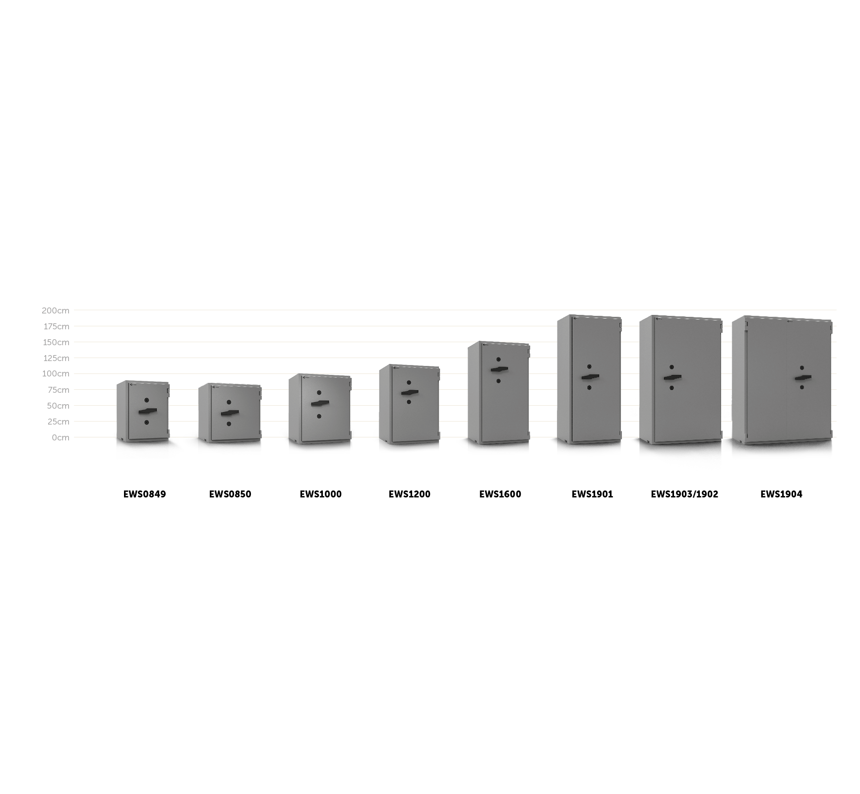 Die Tresore der EWS-Serie stehen für höchste Sicherheit und vielseitige Einsatzmöglichkeiten. Der EWS0850 ist nach EN1143-1 im Widerstandsgrad V zertifiziert und bietet damit ein Maximum an Schutz für Ihre Werte.